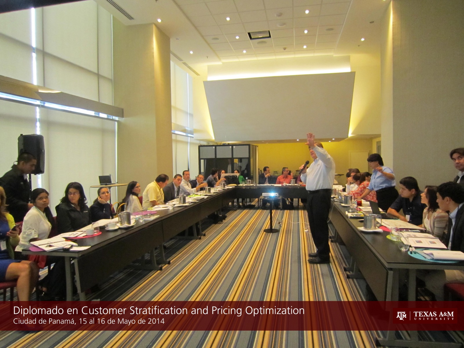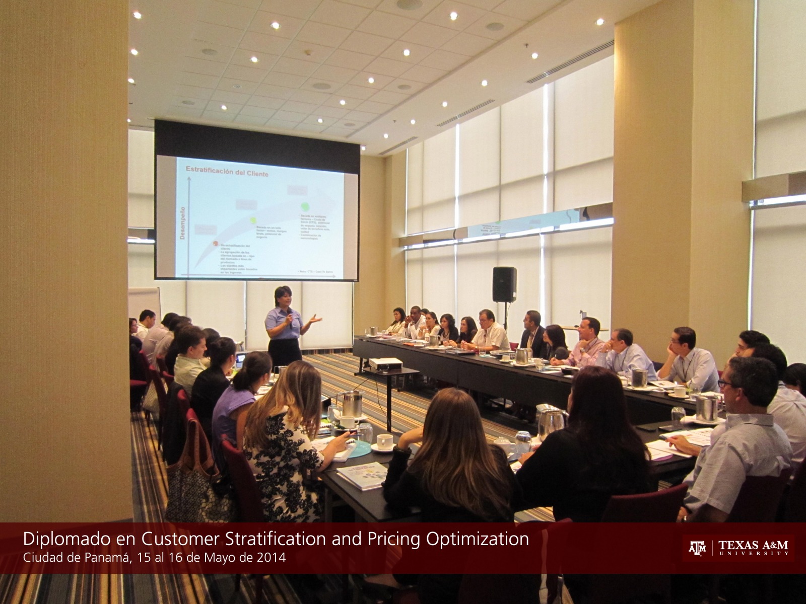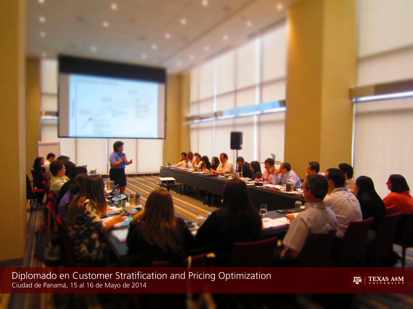 CIUDAD DE PANAMA, 16 de mayo de 2014. Del 15 al 16 de mayo de 2014 se desarrolló el primer módulo del Certificate in Distribution Management, denominado Diplomado en Customer Segmentation and Pricing Optimization, en Panamá dictado por el Dr. Barry Lawrence y la Dra. Esther Rodriguez en el Hotel Aloft Panamá. El programa intensivo de dos días permite desarrollar un modelo propietario de segmentación de clientes desarrollado por catedráticos de Texas A&M que permite poder establecer las mejores políticas de precios para llevar clientes de bajos márgenes de ganancia a zonas de alta rentabilidad por medio de una estrategia de precios adhoc. En total se contaron con 31 participantes de diferentes empresas y sectores, que compartieron sus experiencias y lograron establecer mejores esquemas para mejorar sus estrategias de segmentación y políticas de precios.