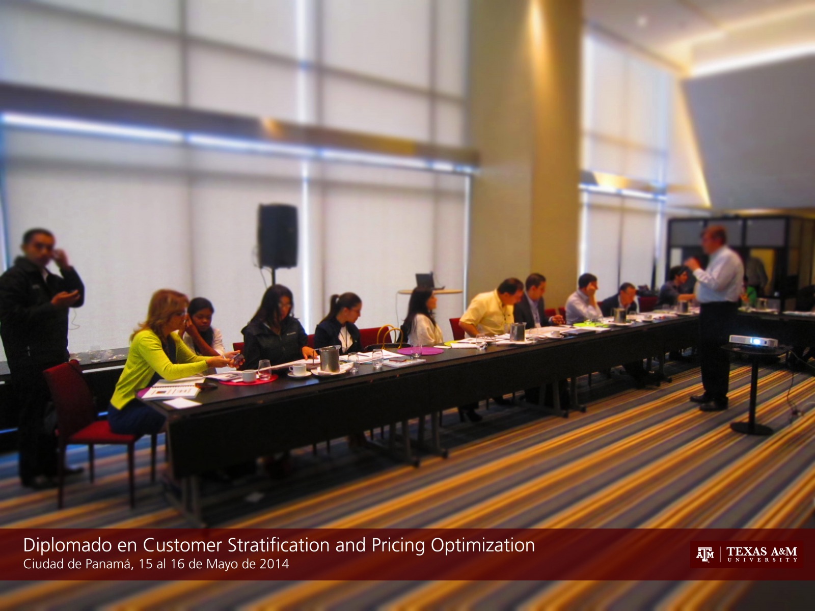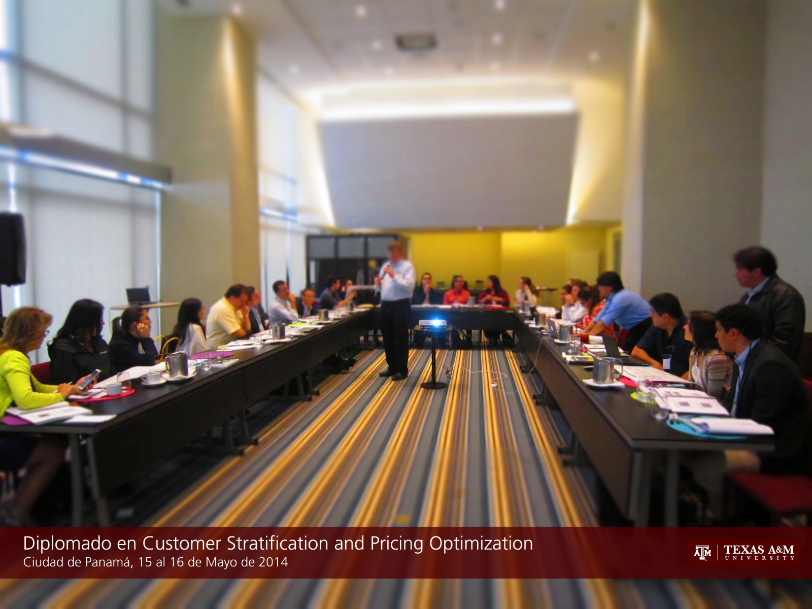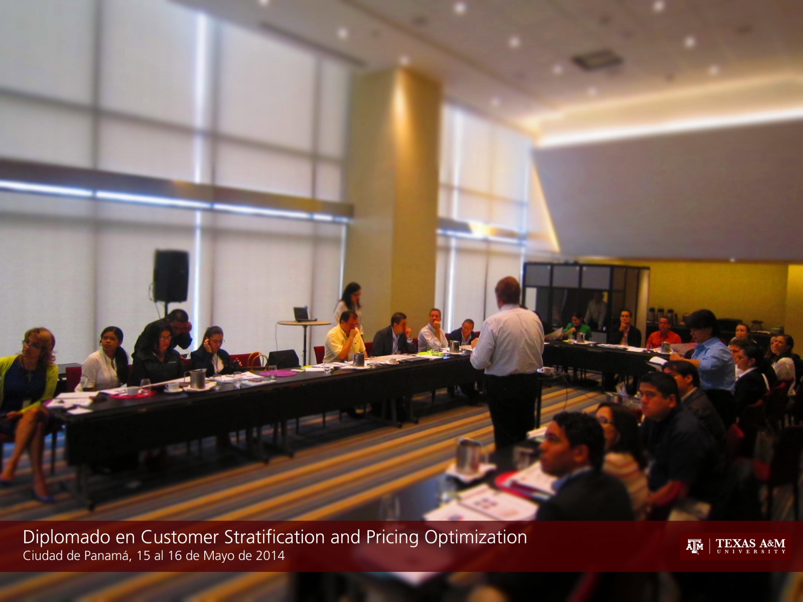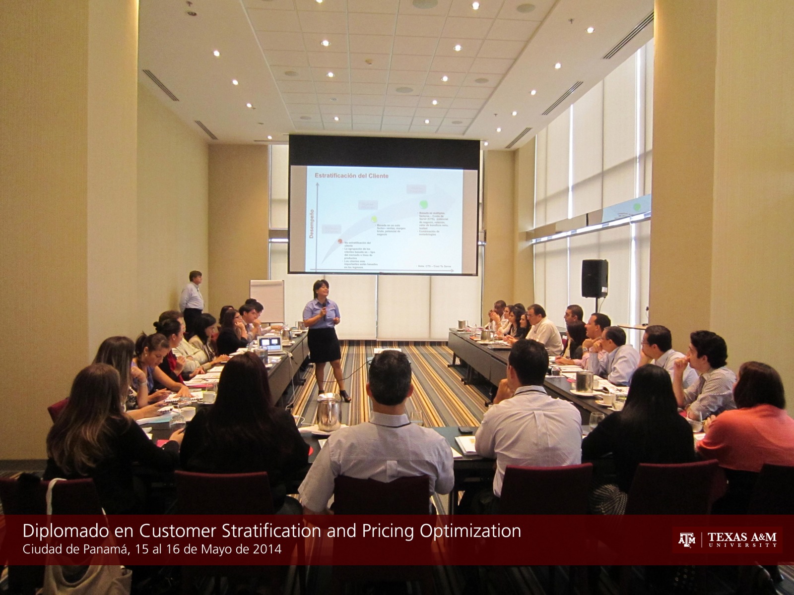 CIUDAD DE PANAMA, 16 de mayo de 2014. Del 15 al 16 de mayo de 2014 se desarrolló el primer módulo del Certificate in Distribution Management, denominado Diplomado en Customer Segmentation and Pricing Optimization, en Panamá dictado por el Dr. Barry Lawrence y la Dra. Esther Rodriguez en el Hotel Aloft Panamá. El programa intensivo de dos días permite desarrollar un modelo propietario de segmentación de clientes desarrollado por catedráticos de Texas A&M que permite poder establecer las mejores políticas de precios para llevar clientes de bajos márgenes de ganancia a zonas de alta rentabilidad por medio de una estrategia de precios adhoc. En total se contaron con 31 participantes de diferentes empresas y sectores, que compartieron sus experiencias y lograron establecer mejores esquemas para mejorar sus estrategias de segmentación y políticas de precios.