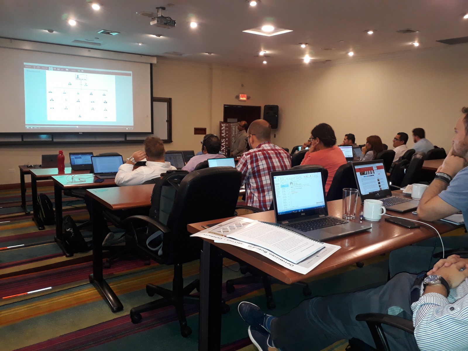 San Salvador, 30 de Octubre 2018. Con 29 participantes se desarrolla el curso Optimizing Business Analytics en El Salvador los dias 30 y 31 de Octubre en el Hotel Crowne Plaza impartido por Dr. Pradip Krishnadevarajan y el Dr. Senthil Gunasekaran, ambos faculty de Texas A&M e investigadores del Global Supply Chain Systems Lab de la misma universidad. El curso apoyado por INSAFORP entrega metodologias y herramientas para diseñar e implementar mecanismos que apoyen el uso de herramientas de Business Intelligence y caputura de informacion de diferentes sistemas. El curso es parte de la Certificacion impartida por Texas A&M University en la región centroamericana.