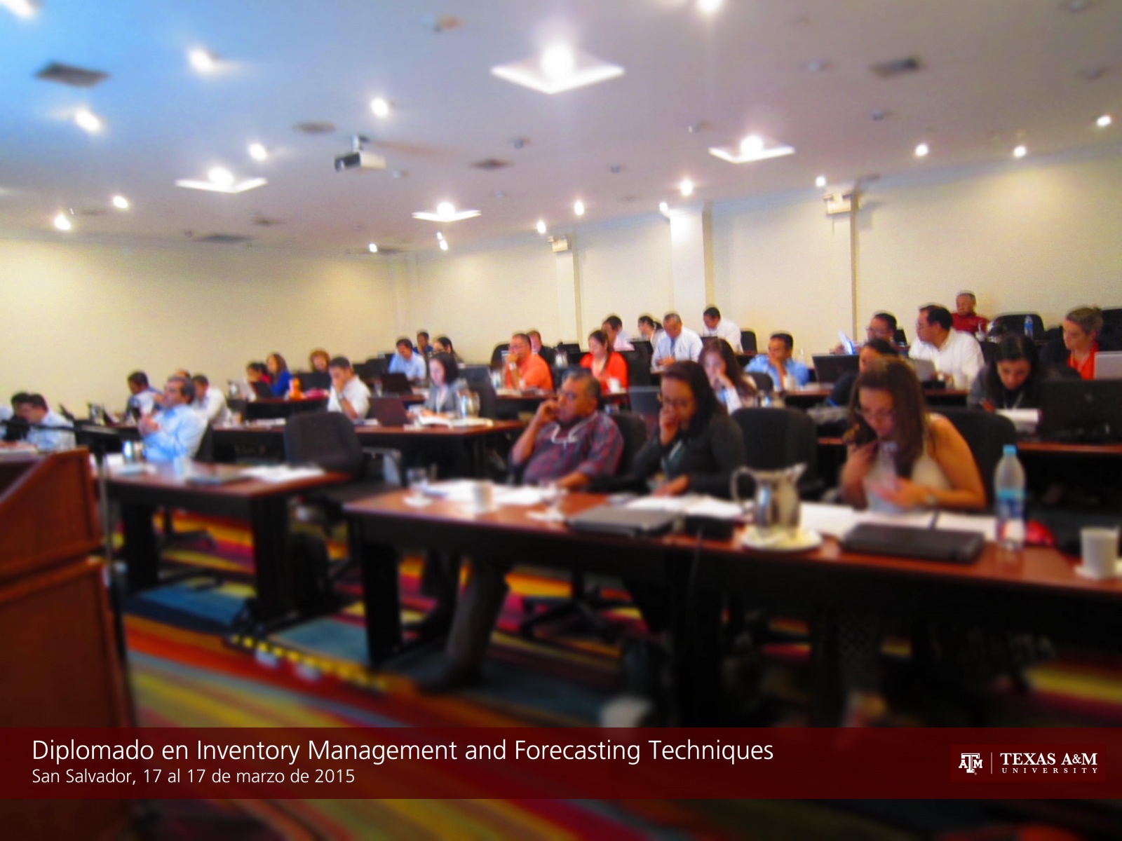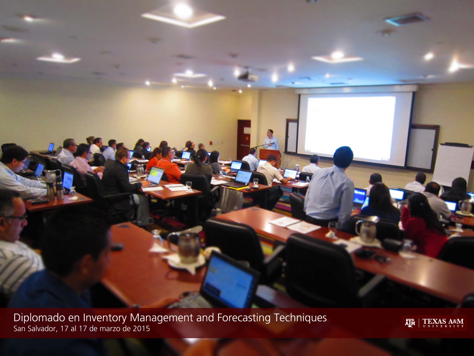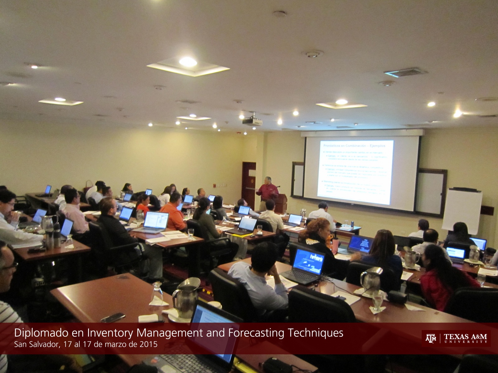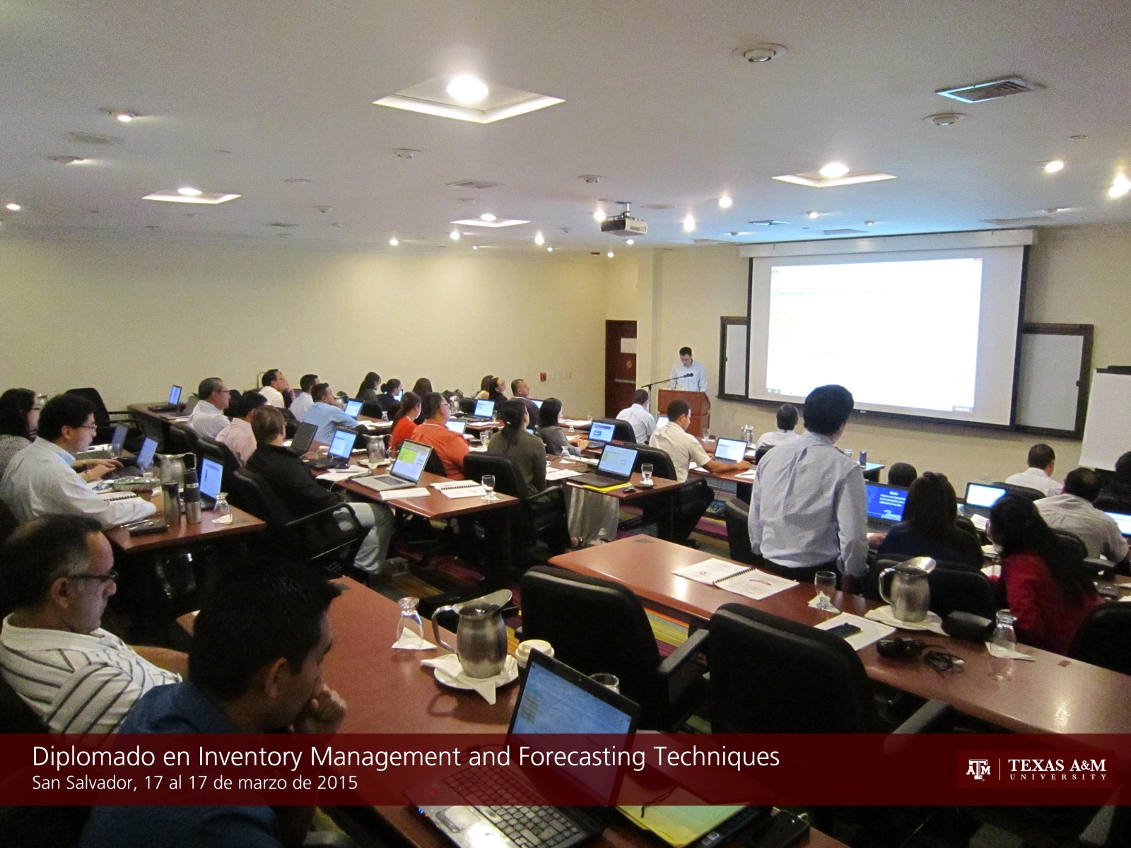 SAN SALVADOR. 17 de marzo de 2015. En el Hotel Crowne Plaza en San Salvador y el Hotel Aloft de Ciudad de Panama se llevo a cabo el primer curso de la serie de cursos brindados por Texas A&M Unviersity conducentes a la certificación de Distribution Management. El curso de la tematica Administración de Inventarios y Métodos de Pronóstico dictado por el Dr. Jorge León y el Dr. Daniel Jornada, ambos académicos de la Universidad de Texas A&M, College Station tuvo una duracion de 20 y 24 horas en San Salvador y Panamá respectivamente. IT Consulting SA de CV, quien representa a Texas A&M University en Centroamérica y Panamá es una empresa orientada a asesorar a sus clientes en estrategias corporativas de tecnologías de la información, rediseño de procesos e innovación y su integración con el negocio. El Dr. Jorge León, fue el docente principal y es miembro de la facultad del Departamento de Tecnología de la Ingeniería y de Distribución Industrial de la Universidad de Texas A&M en College Station, miembro de la facultad del Departamento de Ingeniería Industrial y de Sistemas de la Escuela de Ingeniería Dwight Look de la misma universidad y Director del programa de Ingeniería Mecánica y Tecnologías de Manufactura y es uno de los Directores de la Iniciativa de Manufactura Global y de Investigación en Distribución en la Universidad de Texas A&M. A su vez el Dr. Daniel Jornada, investigador del centro de Manufactura Global y de Investigación en Distribución en la Universidad de Texas A&M. Llegaron participantes de Honduras, Guatemala, y El Salvador, Panamá y Colombia.