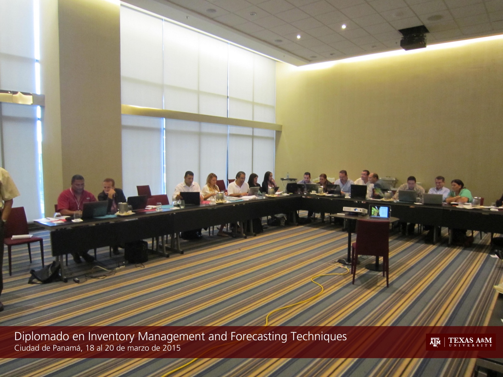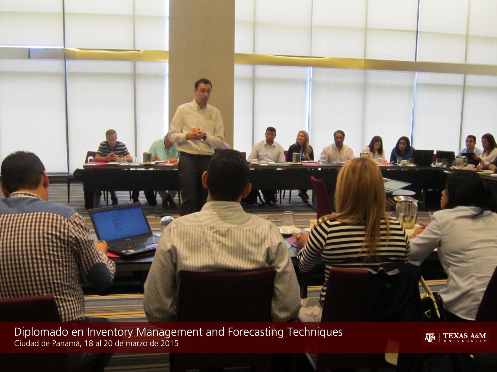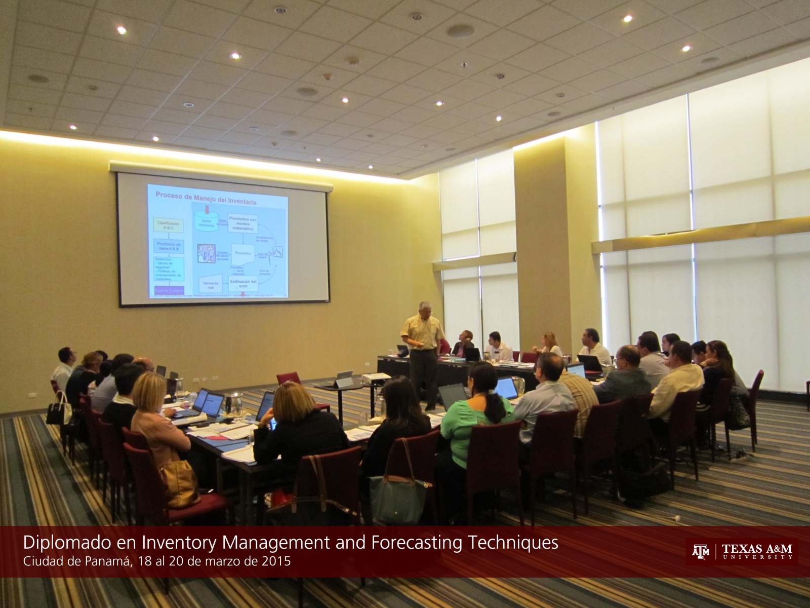 SAN SALVADOR. 17 de marzo de 2015. En el Hotel Crowne Plaza en San Salvador y el Hotel Aloft de Ciudad de Panama se llevo a cabo el primer curso de la serie de cursos brindados por Texas A&M Unviersity conducentes a la certificación de Distribution Management. El curso de la tematica Administración de Inventarios y Métodos de Pronóstico dictado por el Dr. Jorge León y el Dr. Daniel Jornada, ambos académicos de la Universidad de Texas A&M, College Station tuvo una duracion de 20 y 24 horas en San Salvador y Panamá respectivamente. IT Consulting SA de CV, quien representa a Texas A&M University en Centroamérica y Panamá es una empresa orientada a asesorar a sus clientes en estrategias corporativas de tecnologías de la información, rediseño de procesos e innovación y su integración con el negocio. El Dr. Jorge León, fue el docente principal y es miembro de la facultad del Departamento de Tecnología de la Ingeniería y de Distribución Industrial de la Universidad de Texas A&M en College Station, miembro de la facultad del Departamento de Ingeniería Industrial y de Sistemas de la Escuela de Ingeniería Dwight Look de la misma universidad y Director del programa de Ingeniería Mecánica y Tecnologías de Manufactura y es uno de los Directores de la Iniciativa de Manufactura Global y de Investigación en Distribución en la Universidad de Texas A&M. A su vez el Dr. Daniel Jornada, investigador del centro de Manufactura Global y de Investigación en Distribución en la Universidad de Texas A&M. Llegaron participantes de Honduras, Guatemala, y El Salvador, Panamá y Colombia.