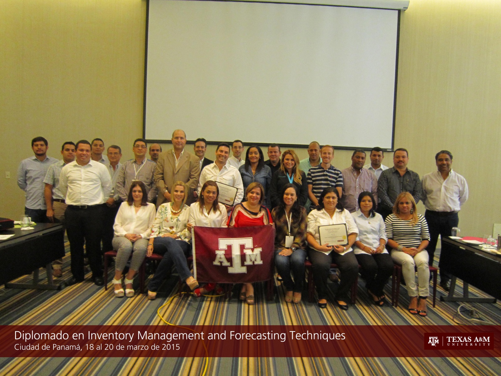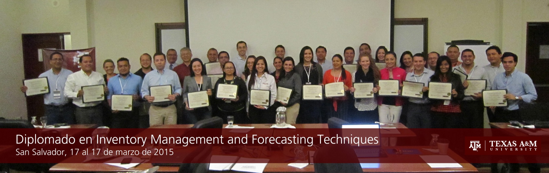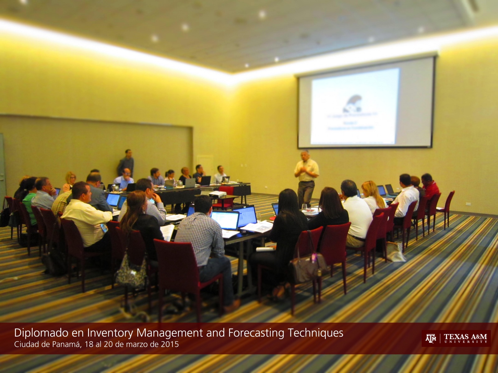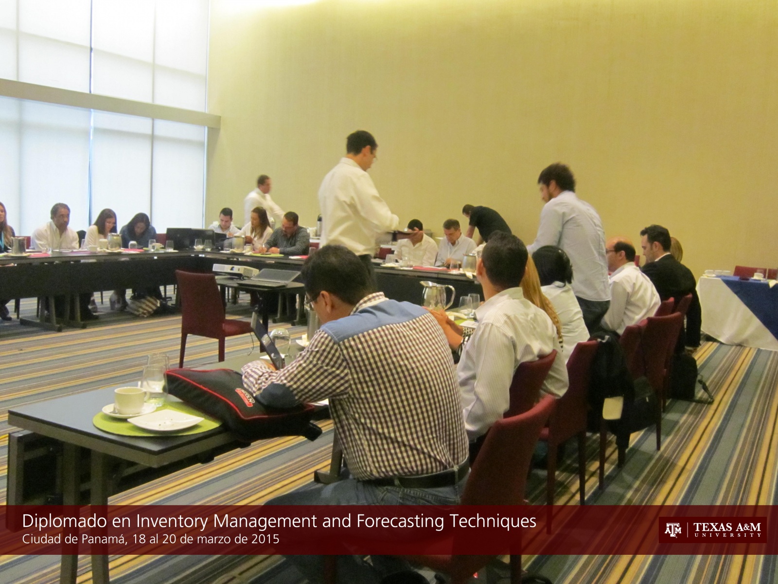SAN SALVADOR. 17 de marzo de 2015. En el Hotel Crowne Plaza en San Salvador y el Hotel Aloft de Ciudad de Panama se llevo a cabo el primer curso de la serie de cursos brindados por Texas A&M Unviersity conducentes a la certificación de Distribution Management. El curso de la tematica Administración de Inventarios y Métodos de Pronóstico dictado por el Dr. Jorge León y el Dr. Daniel Jornada, ambos académicos de la Universidad de Texas A&M, College Station tuvo una duracion de 20 y 24 horas en San Salvador y Panamá respectivamente. IT Consulting SA de CV, quien representa a Texas A&M University en Centroamérica y Panamá es una empresa orientada a asesorar a sus clientes en estrategias corporativas de tecnologías de la información, rediseño de procesos e innovación y su integración con el negocio. El Dr. Jorge León, fue el docente principal y es miembro de la facultad del Departamento de Tecnología de la Ingeniería y de Distribución Industrial de la Universidad de Texas A&M en College Station, miembro de la facultad del Departamento de Ingeniería Industrial y de Sistemas de la Escuela de Ingeniería Dwight Look de la misma universidad y Director del programa de Ingeniería Mecánica y Tecnologías de Manufactura y es uno de los Directores de la Iniciativa de Manufactura Global y de Investigación en Distribución en la Universidad de Texas A&M. A su vez el Dr. Daniel Jornada, investigador del centro de Manufactura Global y de Investigación en Distribución en la Universidad de Texas A&M. Llegaron participantes de Honduras, Guatemala, y El Salvador, Panamá y Colombia.